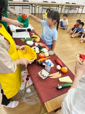 食育講座 投稿: 正休 (15:15) 今日は滋賀県栄養士会の方が来てくださり、つばめ組さんに“食育講座”を開催して頂きました。 毎日お当番活動の一つとして、給食のメニューの食材を、赤(体を作る元になる食材)、黄(体を動かす元になる食材)、緑(体の調子を整える元になる食材)の3色に分類する【食べ物列車】をしていることもあって、興味を持ってお話をきき、上手に食材の分類をしていました。 栄養士会の皆さま、ありがとうございました。