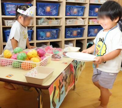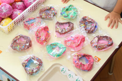 昨日は2歳児すずめ組さんの参観で、おみせやさんごっこをしました。
