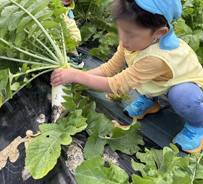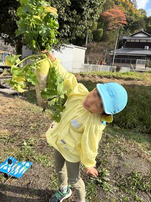 大きく育った大根に「抜けない~」と苦戦する姿もありましたが、根元をしっかり持って力を込めるとスポン!と抜けて「やったー!」「めっちゃ大きい!」「中くらいやー」と嬉しそうな声が飛び交いました。