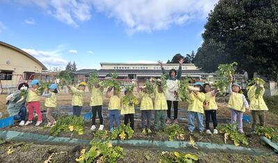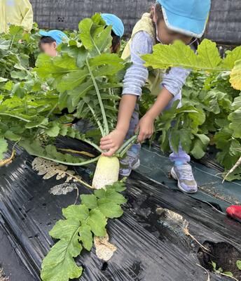 つばめ組さんが育てた大根の収穫をしました。