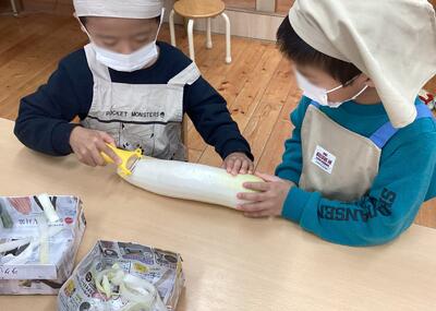 「楽しい!」「もっとやりたい!」とリクエストがあり、予定より多くの大根を皮むきしてもらいました。