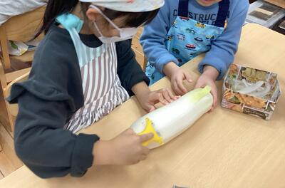 大根の下準備を頑張ったつばめ組さん、明日は美味しい大根鍋を食べようね。