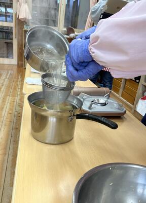 給食で食べるお味噌汁を作りましたよ。