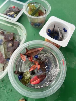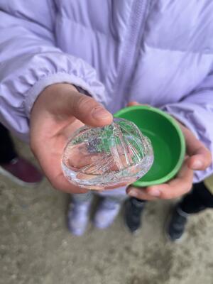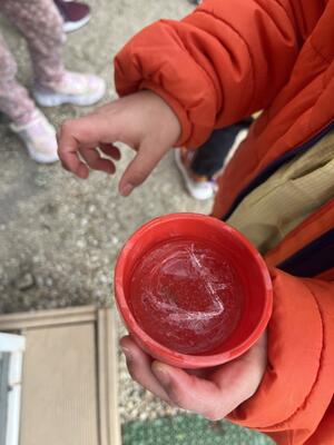 氷が出来たよ 投稿: 正休 (10:35) 日本に大寒波が訪れています。 今年の寒波は数年に一度レベルの長期間にわたって居座る見込みらしく、毎日寒い日が続きますが、正休っこたちはとっても元気に園庭を走り回っていますよ。 今日は残念ながら雪は積もりませんでしたが、氷ができて大喜びの子どもたちです。 つばめ組さんは水と一緒に木の実や葉っぱを入れて、はと組さんは色んな形の入れ物に水を入れて準備していましたよ。