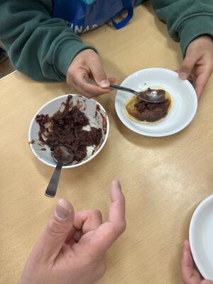 その小豆を使って、給食の先生があんこを作ってくれました。