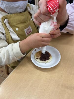 一人ずつ生地を焼いてどら焼きを作りましたよ。