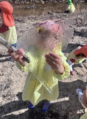 昨日の朝は冷え込んでいたので、前日に作った氷はどうなっているかな⁈と楽しみにしていたあひる組さん。