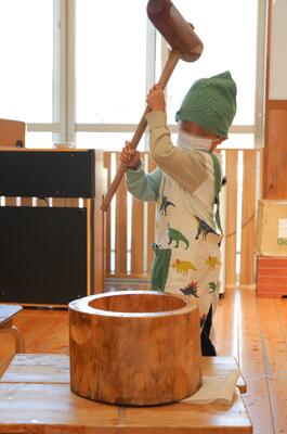 12月後半は、お餅つきをして鏡餅を作ったり、つばめ組さんは粘土で来年度の干支(馬)を製作したり、年賀状を書いてポストに入れに行ったり、各クラスで大掃除をしたりと、子どもたちもお正月を迎える準備をしながら、お正月を楽しみに待つ雰囲気を楽しみました。
