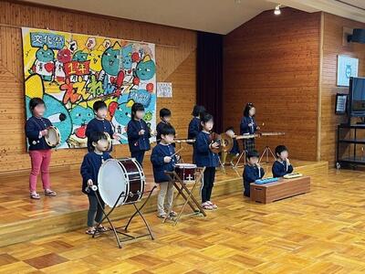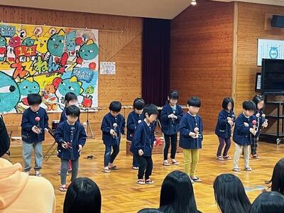 たくさんのお兄さんお姉さん、先生の前で合奏とけん玉を披露し、温かい拍手をいただきました。